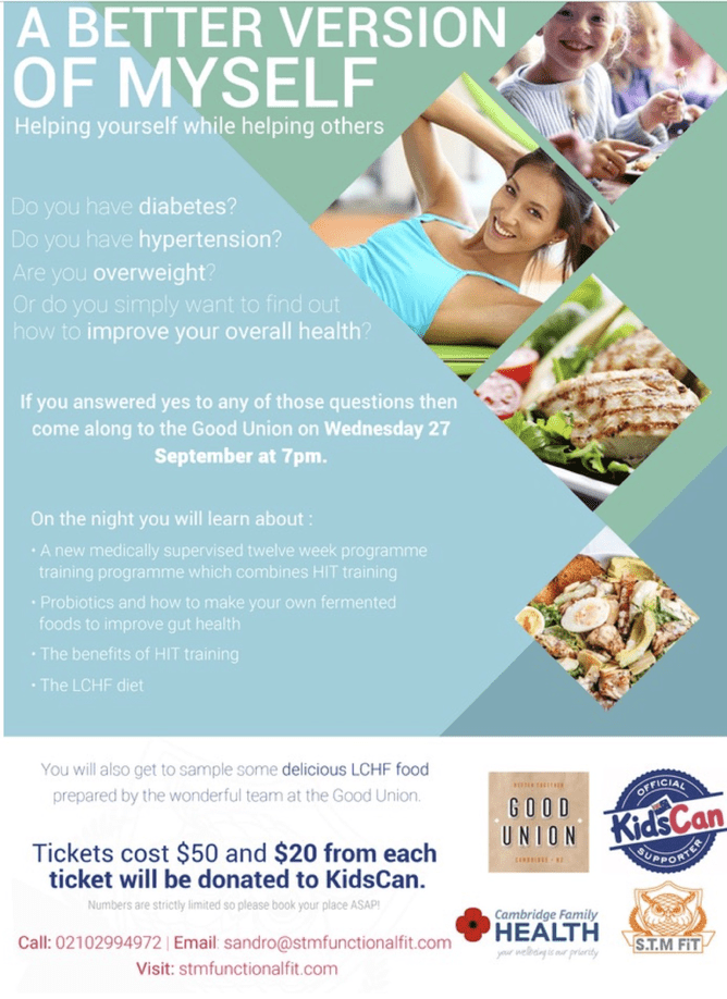 Dr Wood will be talking about the benefits of lower carbohydrate diets, and Mr Sandro Mota from STM Fitness, a local gym, will be talking about the benefits of high intensity interval training. You will also get to hear about the benefits of fermented foods for gut health and get to sample from the new low carb dishes at the Good Union.